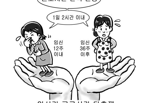 근로기준법 제74조 제7항과 제8항에 의하면, 임신한 지 12주가 지나지 않은 산모나 임신한 지 36주가 지난 산모는 회사에 1일 2시간까지 근로시간을…