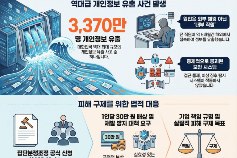 법무법인지향_보도자료 공정위_개인정보위 시정명령 법무법인 지향, 쿠팡의 허위 ‘수정 유출 통지’ 및 ‘허위 유출통지를 전제로 한 기만적 보상’에 대해 개인정보보호위·공정위 긴급 시정명령 촉구(1.15.전 시정명령 촉구) 요약 ● 법무법인 지향은 쿠팡 주식회사가 2025. 12. 25. 이후 “3,370만 명 개인정보 유출…