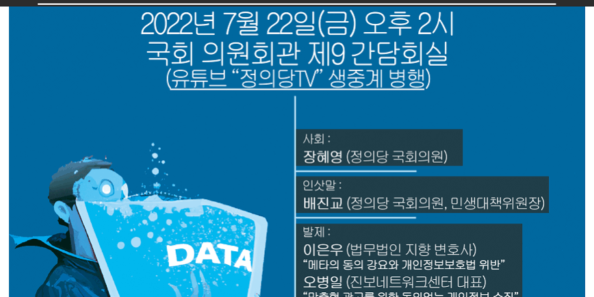 주최 : 국회의원 배진교·국회의원 장혜영· 민주사회를위한변호사모임 디지털정보위원회·법무법인 지향·정의당민생대책위원회·진보네트워크센터·참여연대