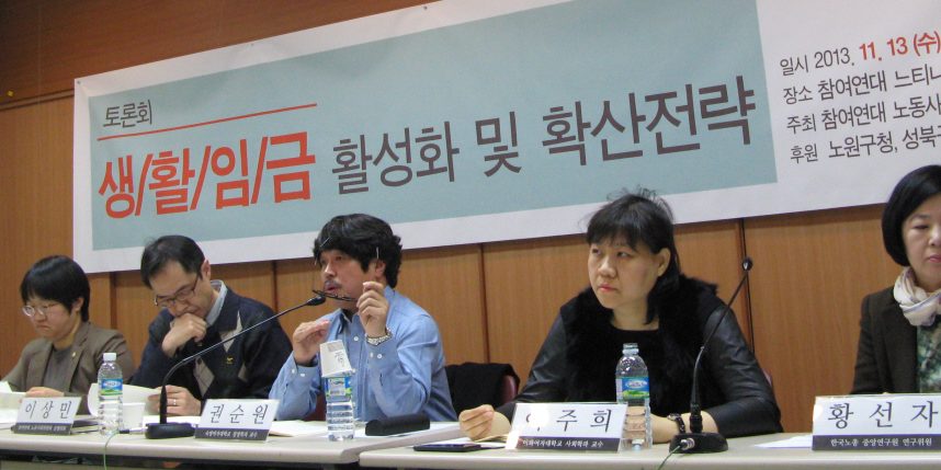 이번 토론회는 2012년 노원구와 성북구 등에서 도입되었던 생활임금 사례를 중심으로 생활임금의 확산전략과 국내·외 사례 등을 논의하였으며, 생활임금은 공공기관이 자신과 용역·파견, 위탁·조달 계약관계에 있는 민간업체에게 민간업체가 고용한 노동자의 임금 수준을 용역, 조달계약 상 계약조건으로 포함시켜, 민간업체에 고용된 노동자에게 적정한 수준의 임금을 보장하는 제도입니다.