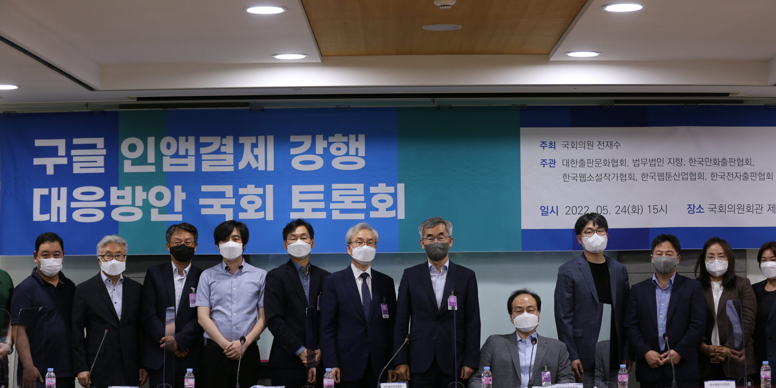 앞서 알려드린 바와 같이 지난 5월 24일 여의도 국회의원회관에서 법무법인 지향이 주관하는 구글 인앱강제 강행 대응방안 토론회가 있었습니다. 이 자리에는 대한출판문화협회, 한국전자출판협회, 한국만화출판협회, 한국웹소설작가협회, 한국웹툰산업협회 등의 단체들이 참석하였습니다.