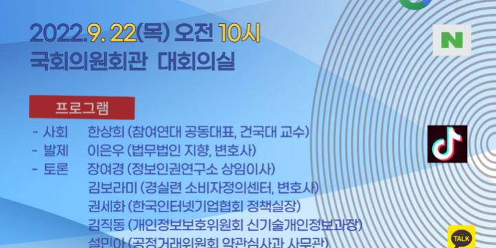- 제목 : 국회 토론회 <구글, 메타의 행태정보 무단 수집 및 제공을 통해 본 “맞춤형 광고의 개인정보 침해 문제와 해결방안”>